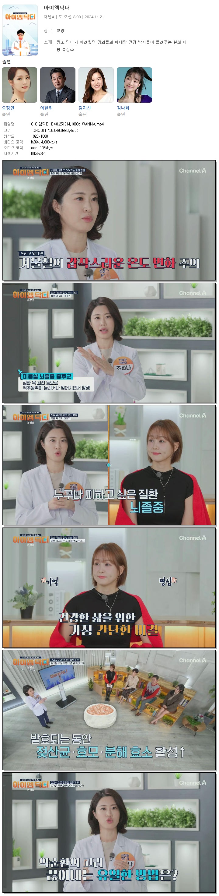 [채널A] 아이엠닥터.E40.251214.1080p.WANNA[오정연, 이한위]