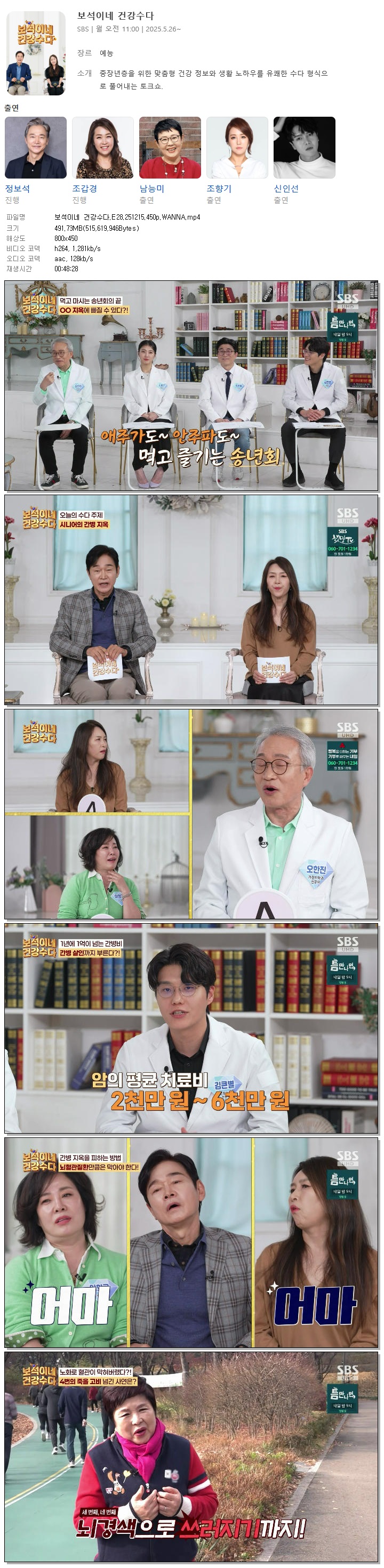 [SBS] 보석이네 건강수다.E28.251215.450p.WANNA[정보석, 조갑경]