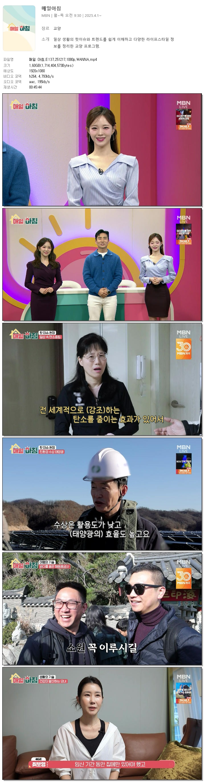 [MBN] 매일 아침.E137.251217.1080p.WANNA[한혜원, 이정수].mp4