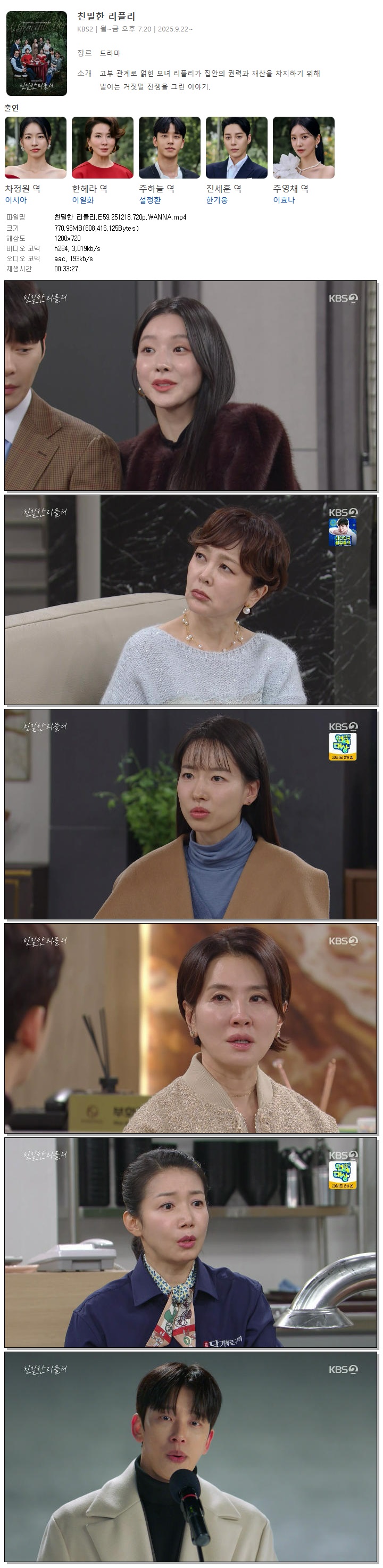 [KBS2] 친밀한 리플리.E59.251218.720p.WANNA[이시아, 이일화].mp4