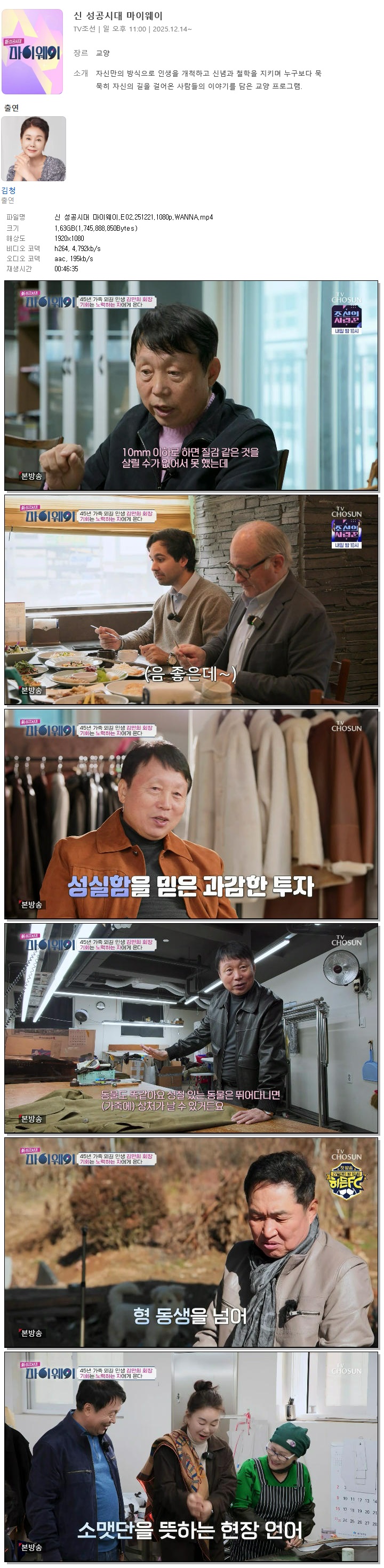 [TV조선] 신 성공시대 마이웨이.E02.251221.1080p.WANNA[김청].mp4