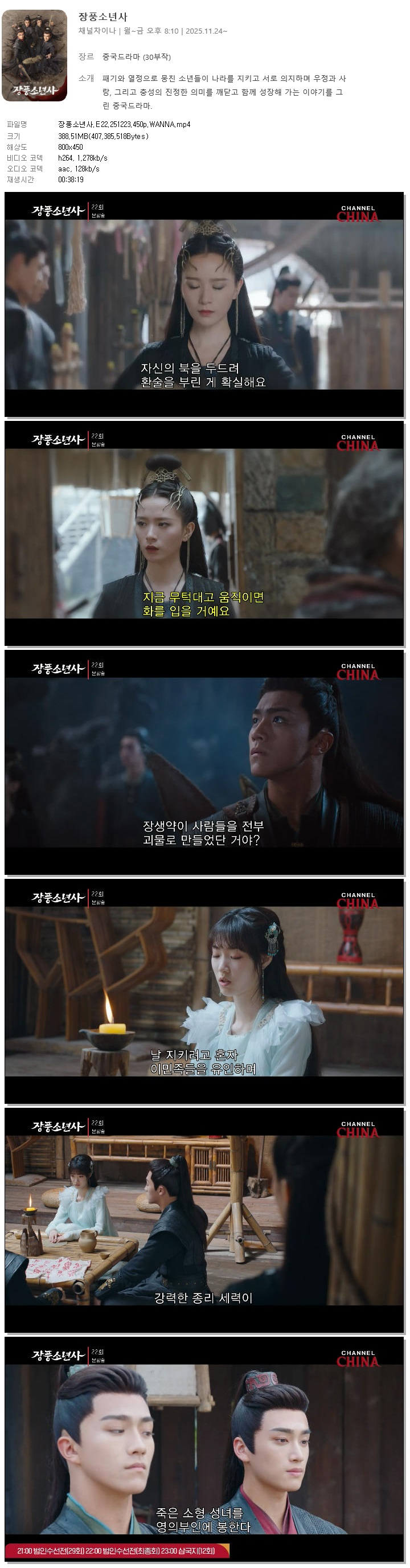 [채널차이나] 장풍소년사.E22.251223.450p.WANNA[이탁소, 장강락]