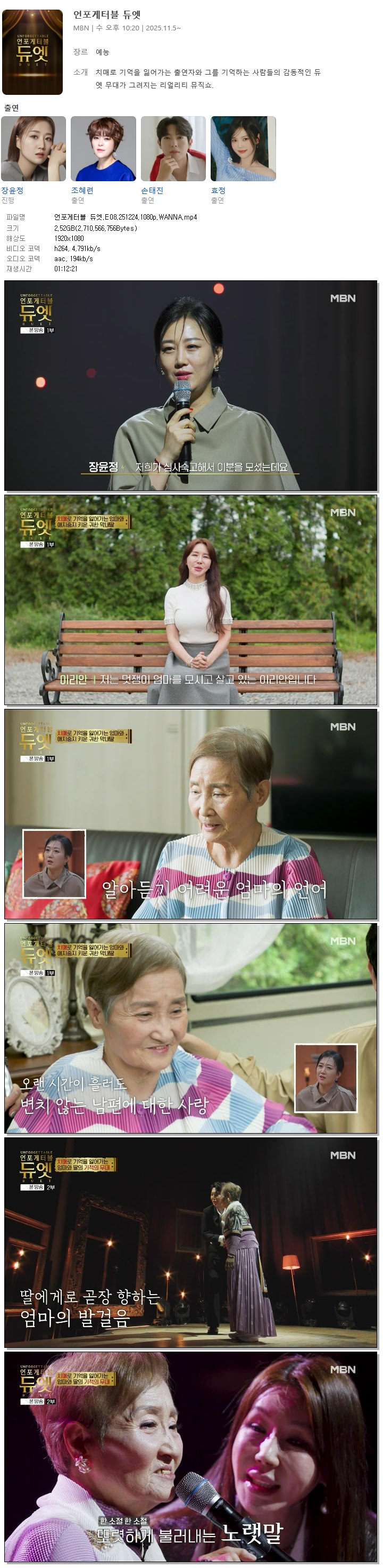 [MBN] 언포게터블 듀엣.E08.251224.1080p.WANNA[장윤정, 손태진].mp4
