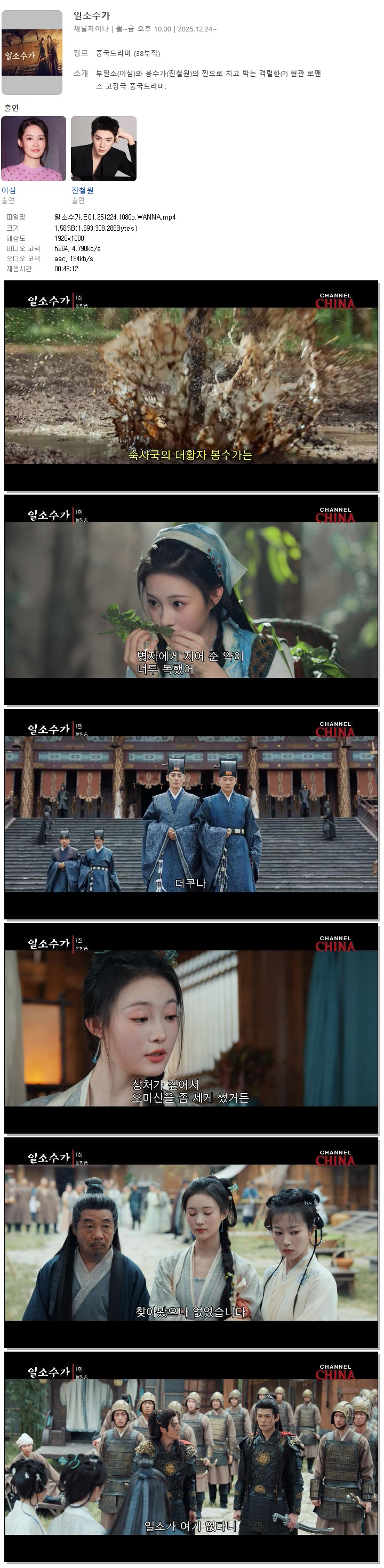 [채널차이나] 일소수가.E01.251224.1080p.WANNA[이심, 진철원]