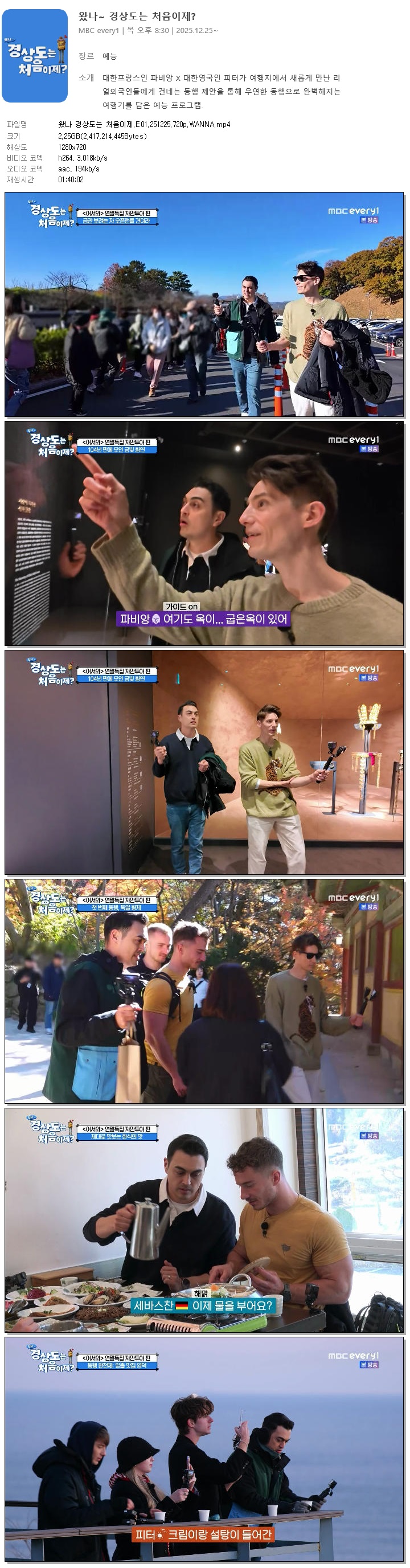 [MBC Every1] 왔나 경상도는 처음이제.E01.251225.720p.WANNA[파비앙, 피터].mp4