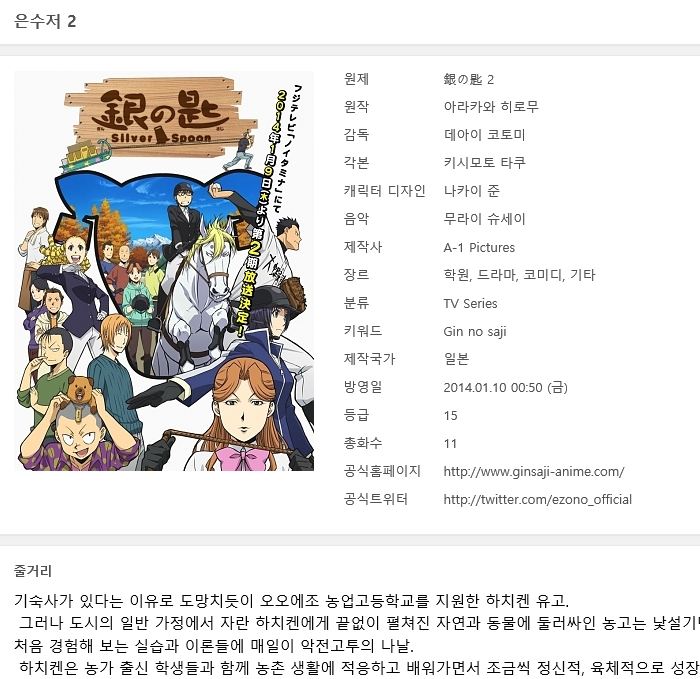 [인생] 은수저 [Gin no saji - 2기] 01-11완결 -일상 코믹 드라마-