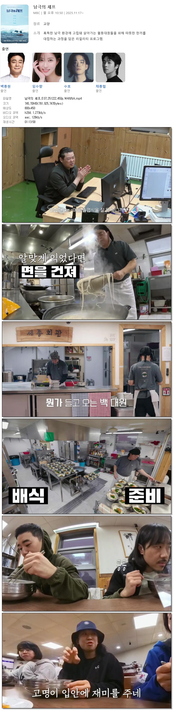 [MBC] 남극의 셰프.E07.251222.450p.WANNA[백종원, 임수향]