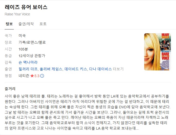 [영화-멜로] 레이즈 유어 보이스.Raise.Your.Voice.2004.1080p.한글자막