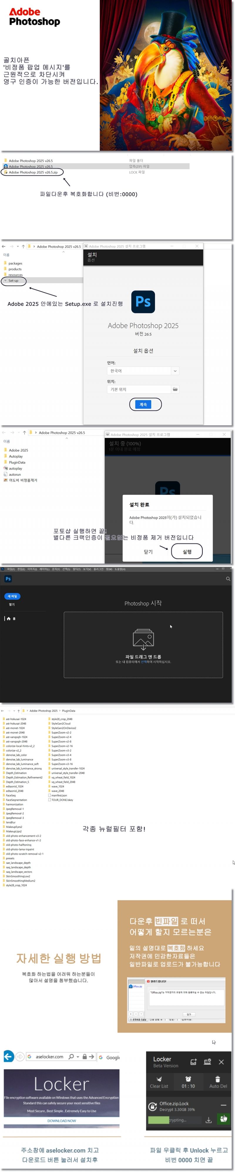 [비정품제거][영구인증] 어도비 포토샵 2025 한글 뉴럴필터포함 클린설치 v26.5