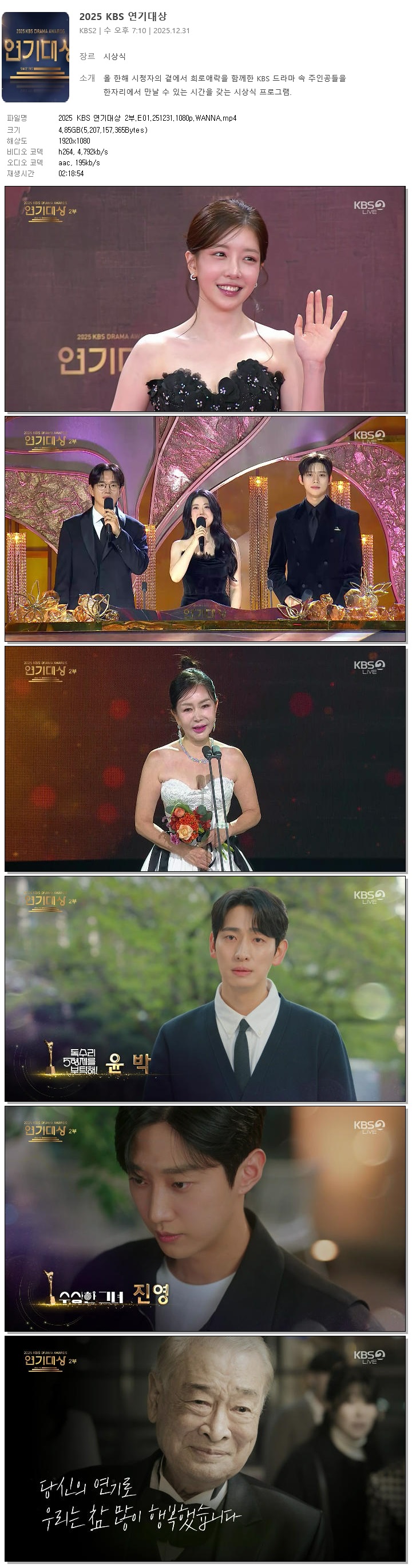 [KBS2] 2025 KBS 연기대상 2부.E01.251231.1080p.WANNA[장성규, 남지현]