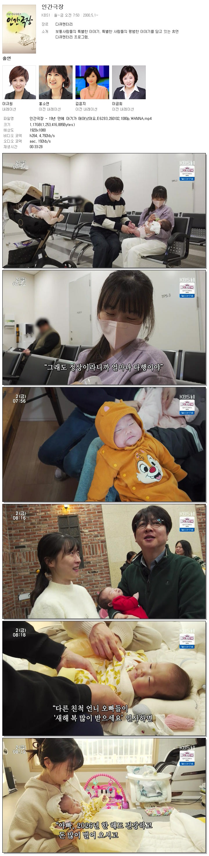 [KBS1] 인간극장 - 19년 만에 아기가 태어났어요.E6283.260102.1080p.WANNA