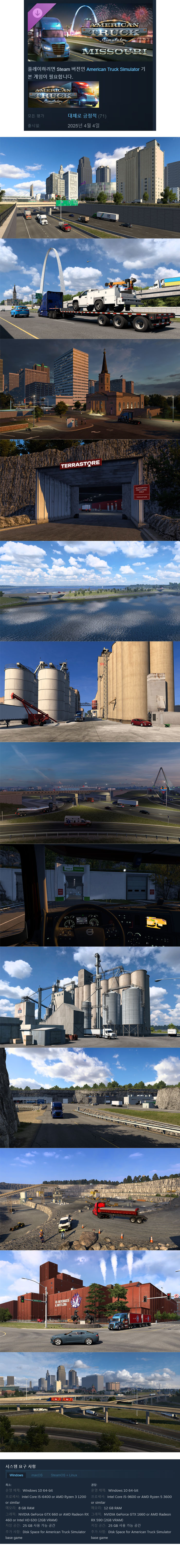 [무설치] 아메리칸 트럭 시뮬레이터2-미주리 주V1.54.2.6 한글