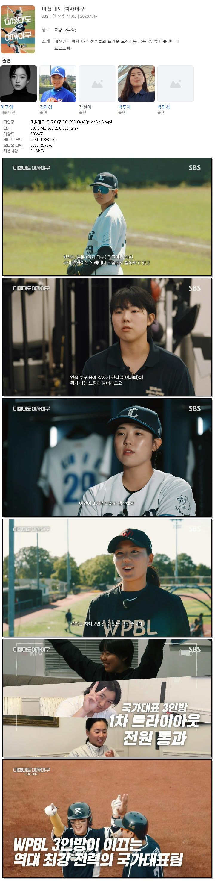 [SBS] 미쳤대도 여자야구.E01.260104.450p.WANNA[김라경, 박주아].mp4
