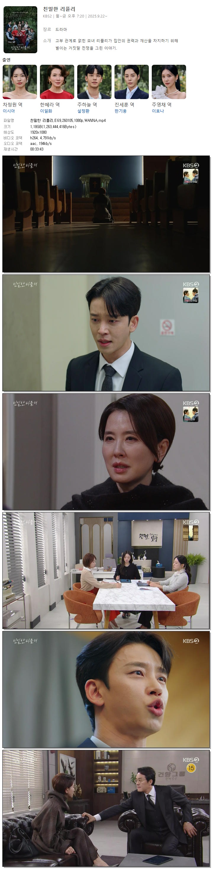 [KBS2] 친밀한 리플리.E69.260105.1080p.WANNA[이시아, 이일화].mp4