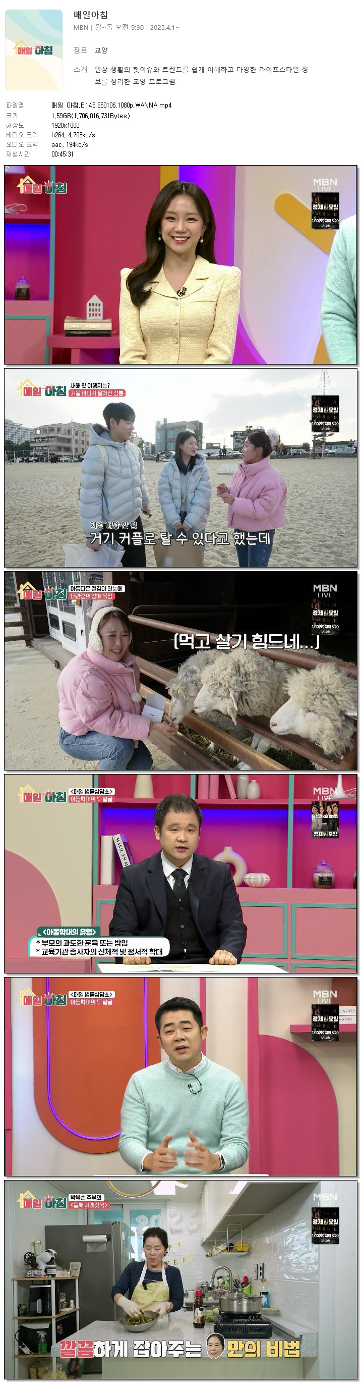 [MBN] 매일 아침.E146.260106.1080p.WANNA[한혜원, 이정수].mp4