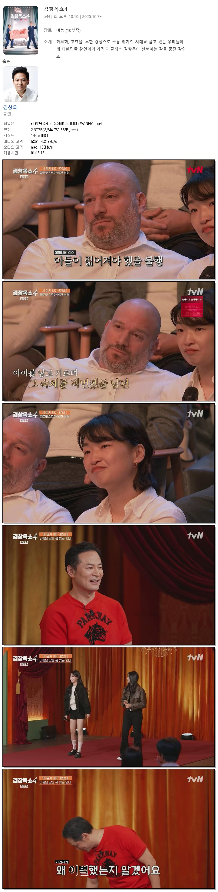 [TVN] 김창옥쇼4.E12.260106.1080p.WANNA[김창옥]