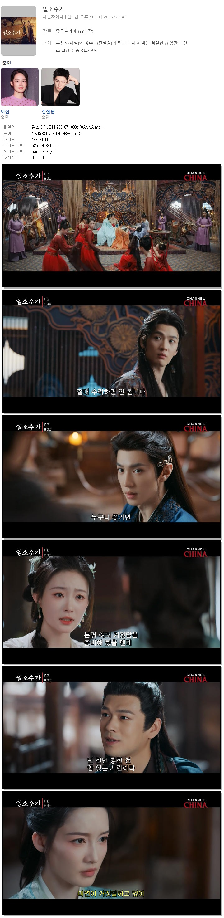 [채널차이나] 일소수가.E11.260107.1080p.WANNA[이심, 진철원].mp4