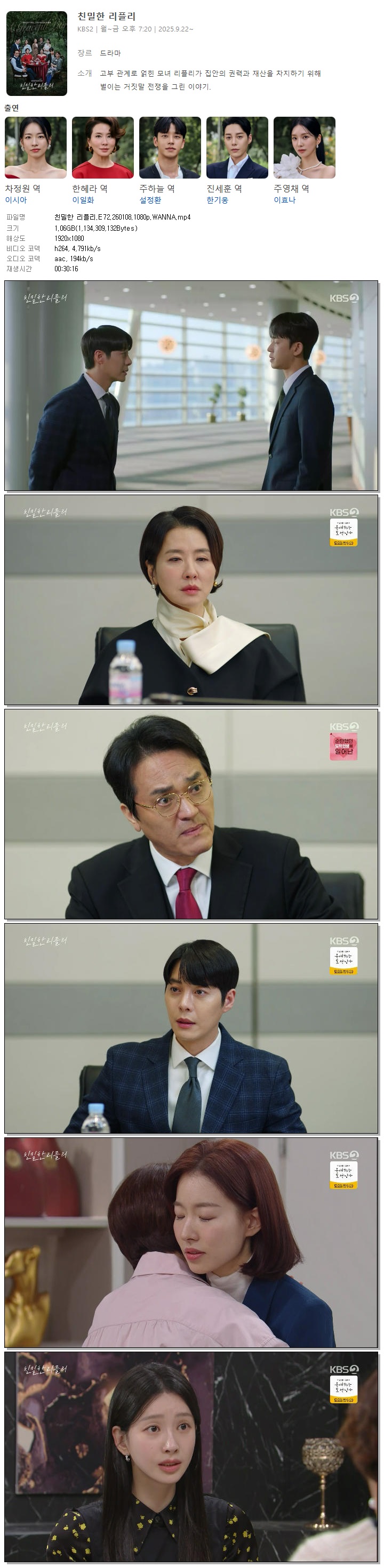 [KBS2] 친밀한 리플리.E72.260108.1080p.WANNA[이시아, 이일화].mp4