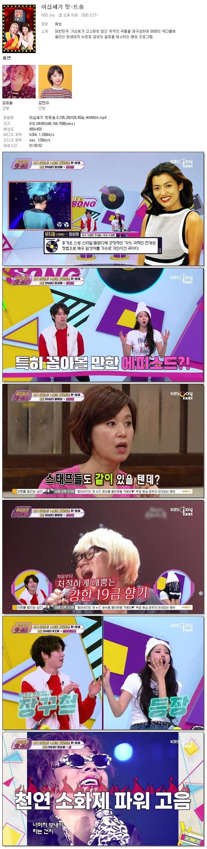[KBS JOY] 이십세기 힛트쏭.E295.260109.450p.WANNA[김희철, 미주]
