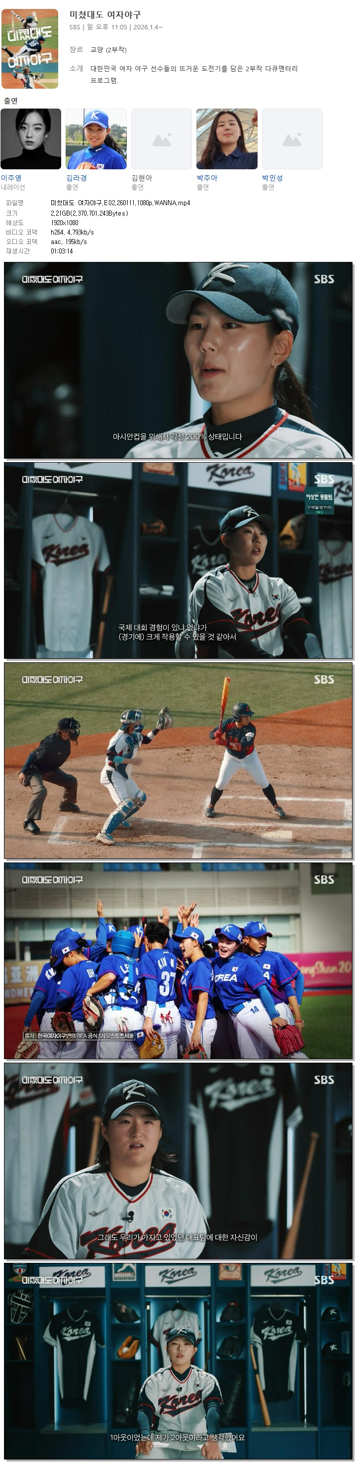 [SBS] 미쳤대도 여자야구.E02.260111.1080p.WANNA[김라경, 박주아].mp4