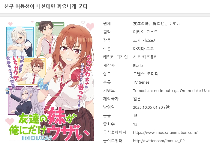 친구 여동생이 나한테만 짜증나게 군다! 01~12(완)