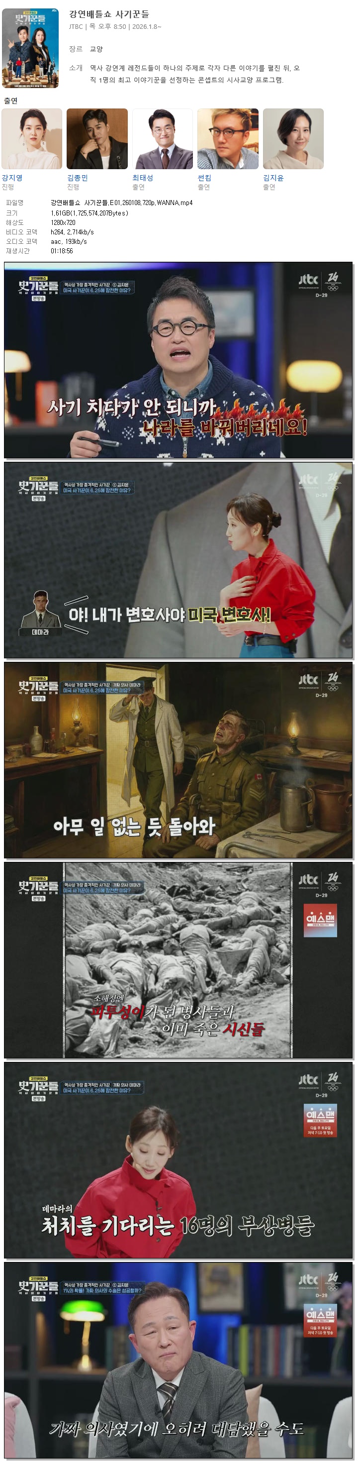[JTBC] 강연배틀쇼 사기꾼들.E01.260108.720p.WANNA[최태성, 표창원]