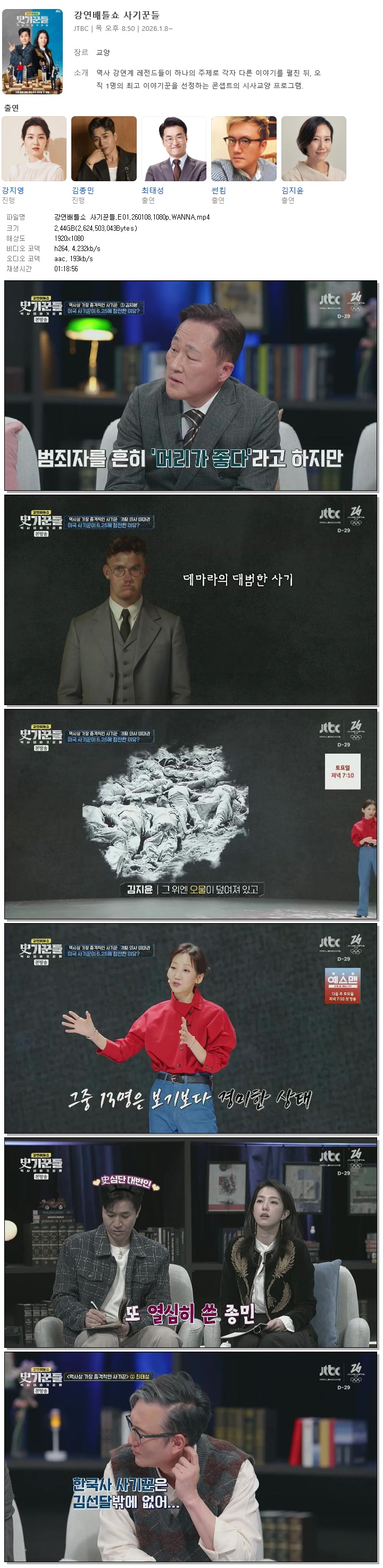[JTBC] 강연배틀쇼 사기꾼들.E01.260108.1080p.WANNA[최태성, 표창원]