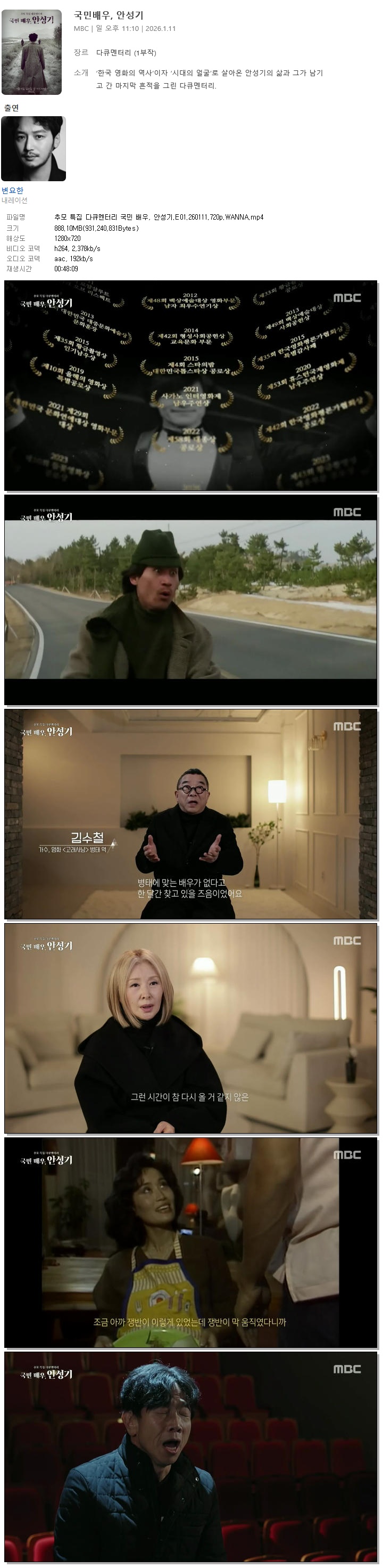 [MBC] 추모 특집 다큐멘터리 국민 배우, 안성기.E01.260111.720p.WANNA