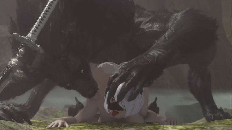 [3D] - 임무중에 만난 거대 늑대 몬스터에게 잡혀버린 2b.mp4