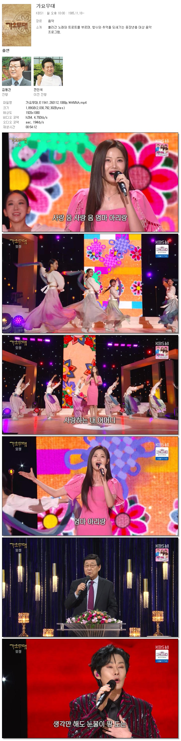 [KBS1] 가요무대.E1941.260112.1080p.WANNA[손빈아, 김연자]