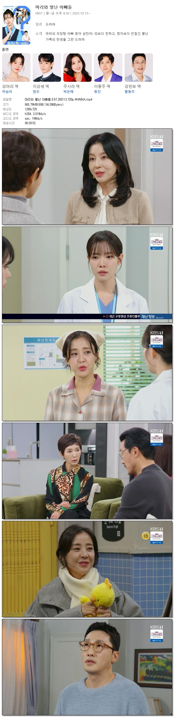 [KBS1] 마리와 별난 아빠들.E67.260113.720p.WANNA[하승리, 현우].mp4