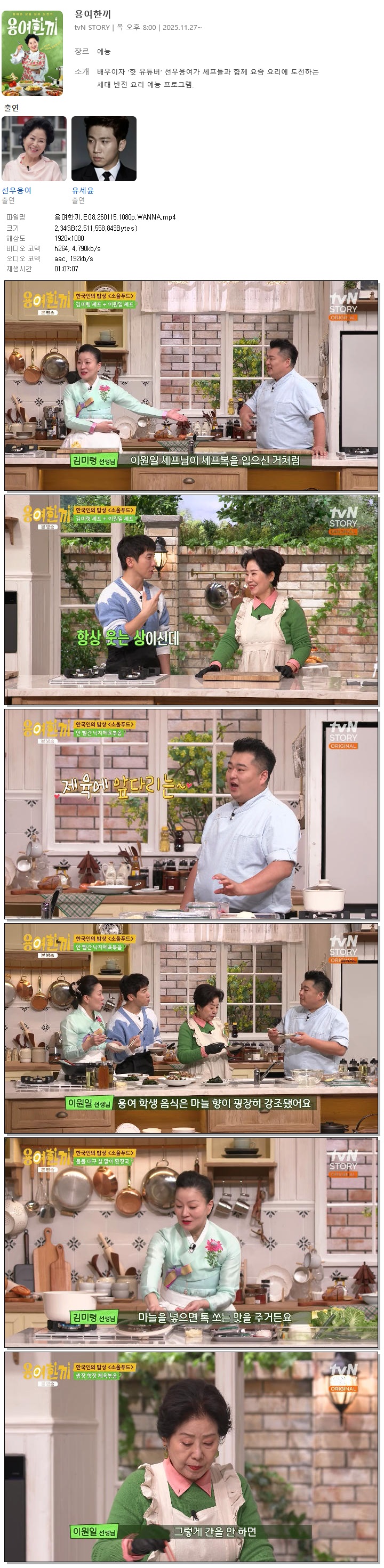 [TVN STORY] 용여한끼.E08.260115.1080p.WANNA[이원일, 김미령]