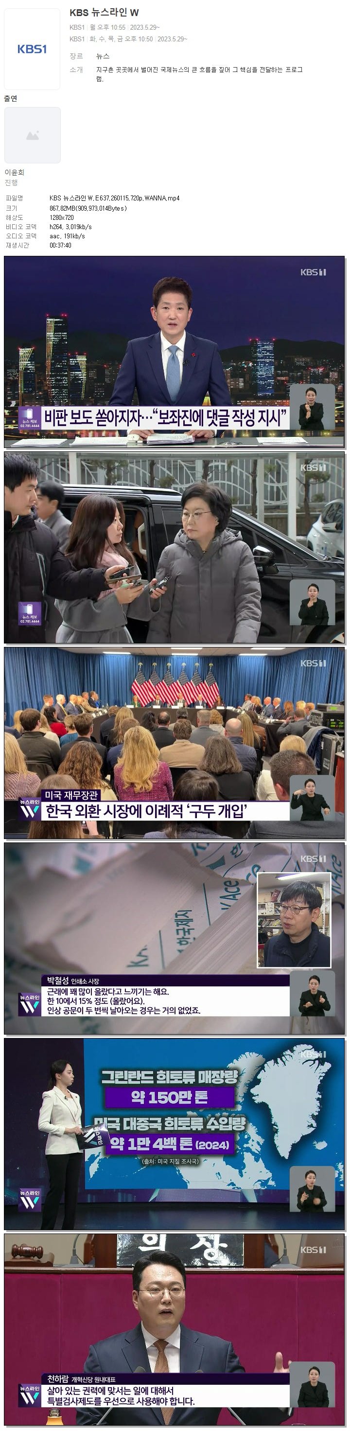 [KBS1] KBS 뉴스라인W.E637.260115.720p.WANNA