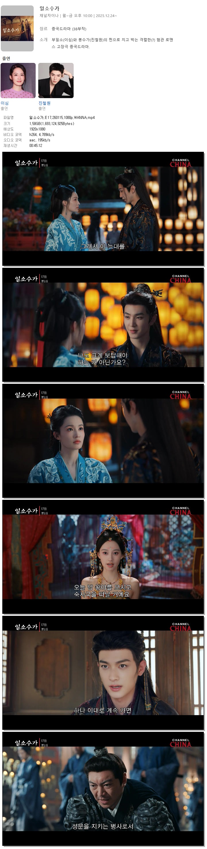 [채널차이나] 일소수가.E17.260115.1080p.WANNA[이심, 진철원]