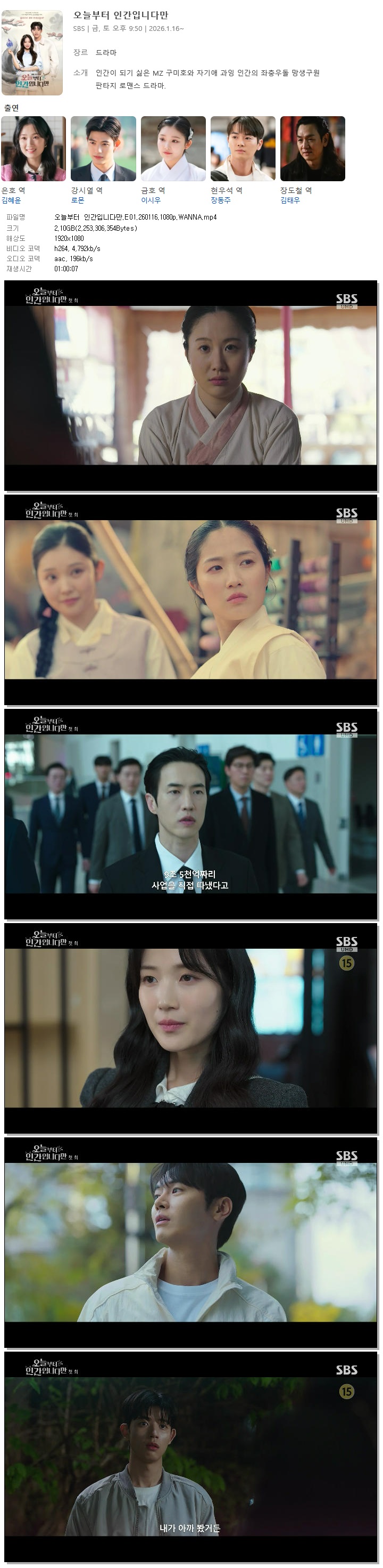 [SBS] 오늘부터 인간입니다만.E01.260116.1080p.WANNA[김혜윤, 로몬].mp4
