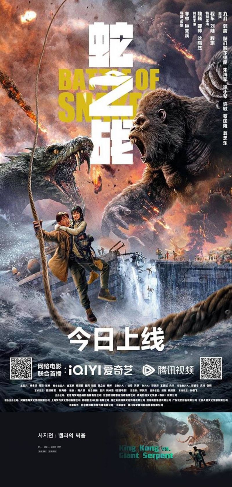 [사지전 뱀과의 전쟁] 중국 뱀vs킹콩 자체자막 고화질