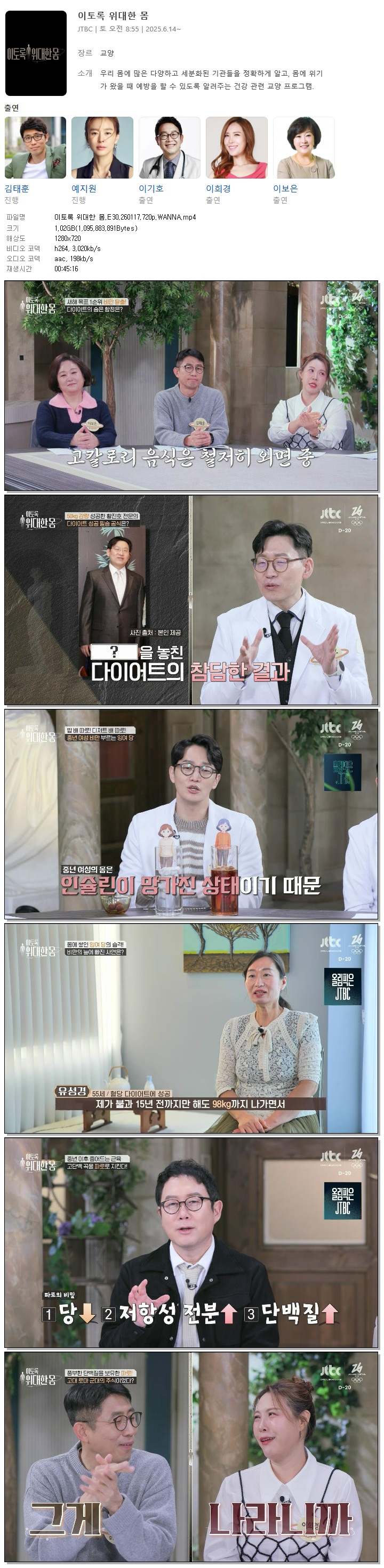 [JTBC] 이토록 위대한 몸.E30.260117.720p.WANNA[김태훈, 예지원].mp4