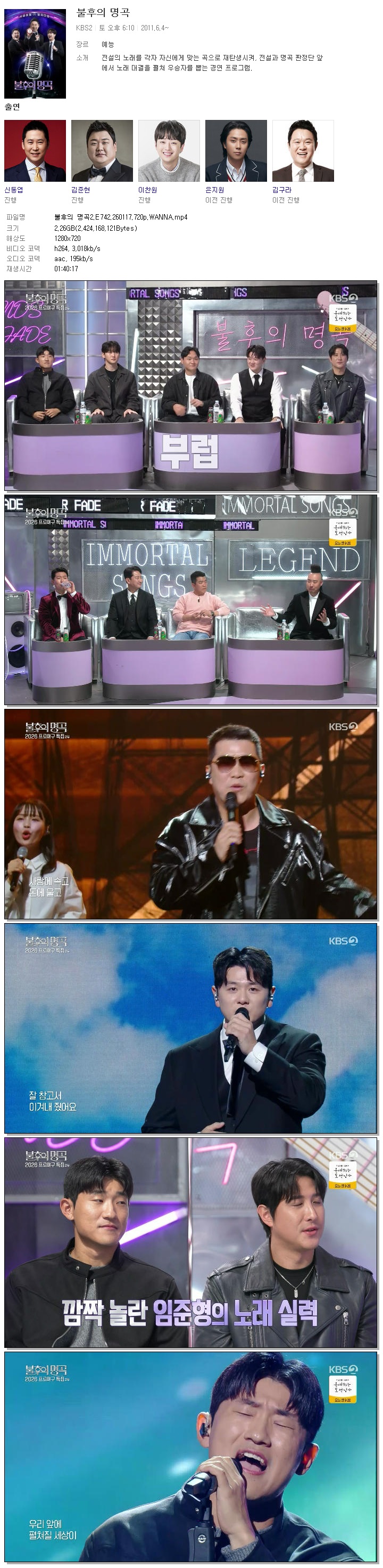 [KBS2] 불후의 명곡2.E742.260117.720p.WANNA[정근우, 유희관]