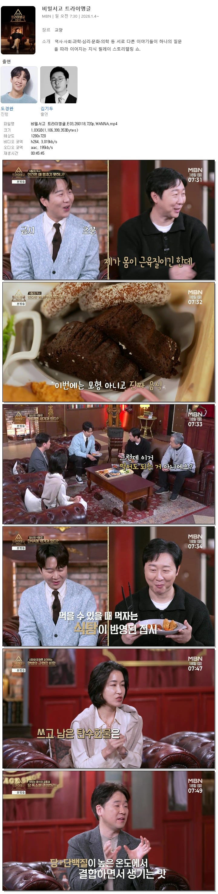 [MBN] 비밀서고 트라이앵글.E03.260118.720p.WANNA[도경완, 김기두]