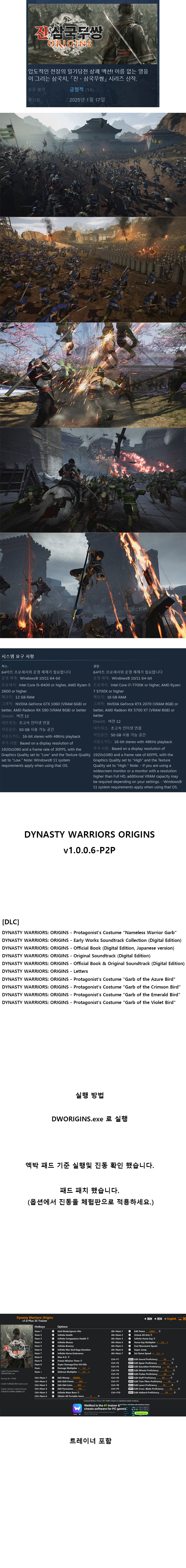 [무설치] 진삼국무쌍-오리진 V1.0.0.6+트레이너 한글