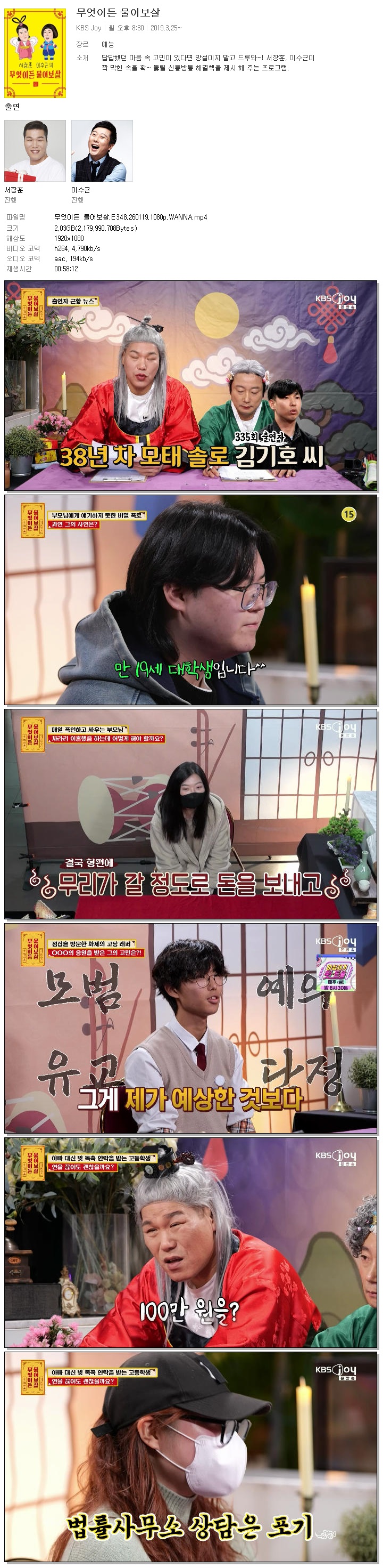 [KBS JOY] 무엇이든 물어보살.E348.260119.1080p.WANNA[서장훈, 이수근].mp4