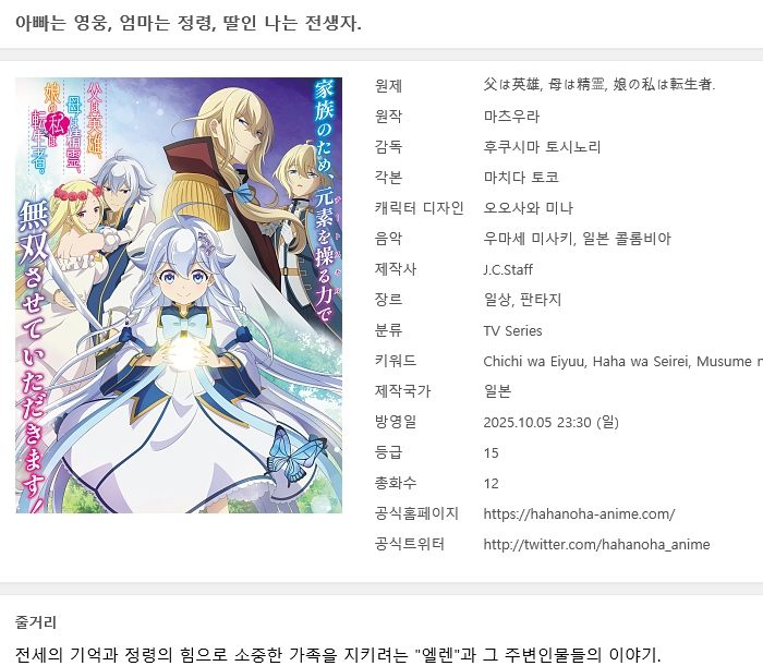 [인생] 아빠는 영웅 엄마는 정령 딸인 나는 전생자 01-12완결 -일상 판타지-