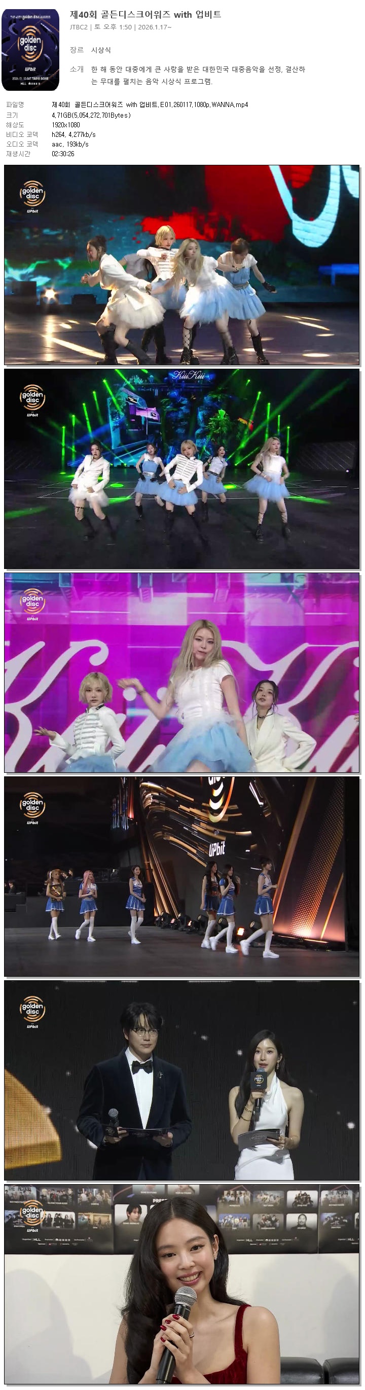 [JTBC2] 제40회 골든디스크어워즈 with 업비트.E01.260117.1080p.WANNA[성시경, 문가영].mp4
