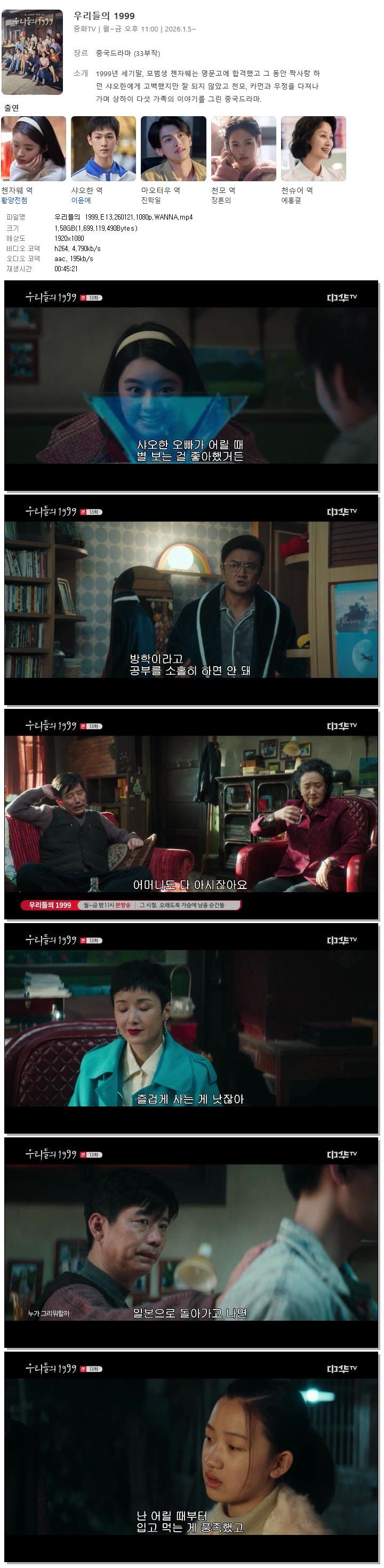 [중화TV] 우리들의 1999.E13.260121.1080p.WANNA[황양전첨, 이윤예].mp4