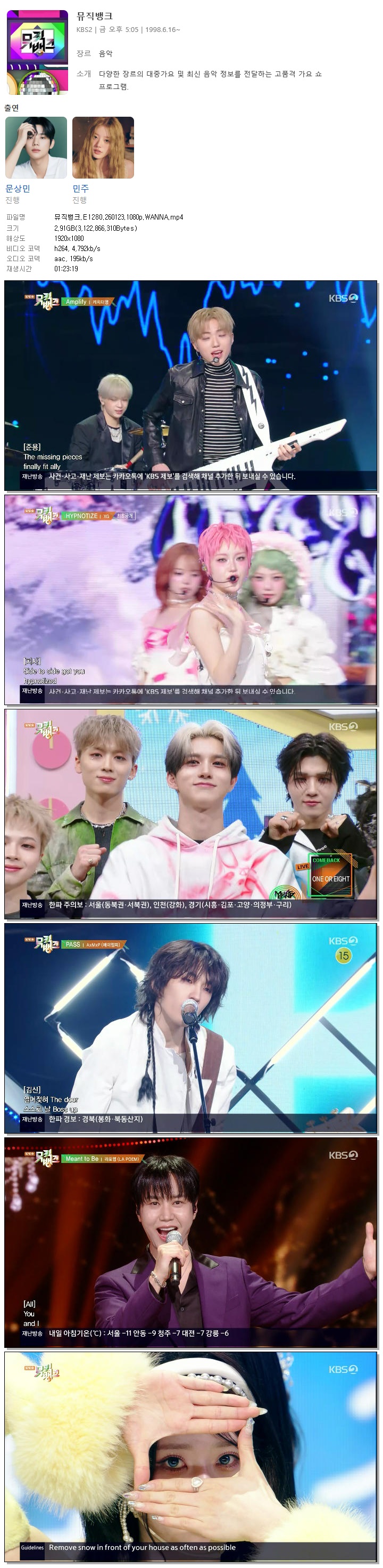 [KBS2] 뮤직뱅크.E1280.260123.1080p.WANNA[원어스, EXO]