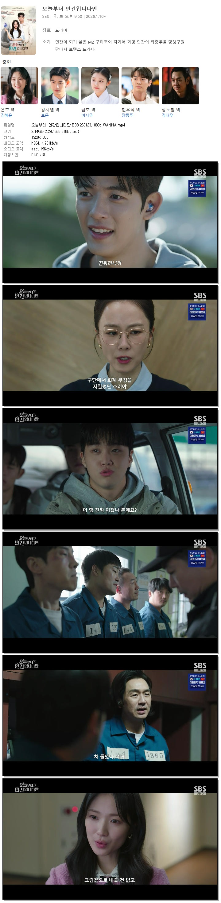 [SBS] 오늘부터 인간입니다만.E03.260123.1080p.WANNA[김혜윤, 로몬]