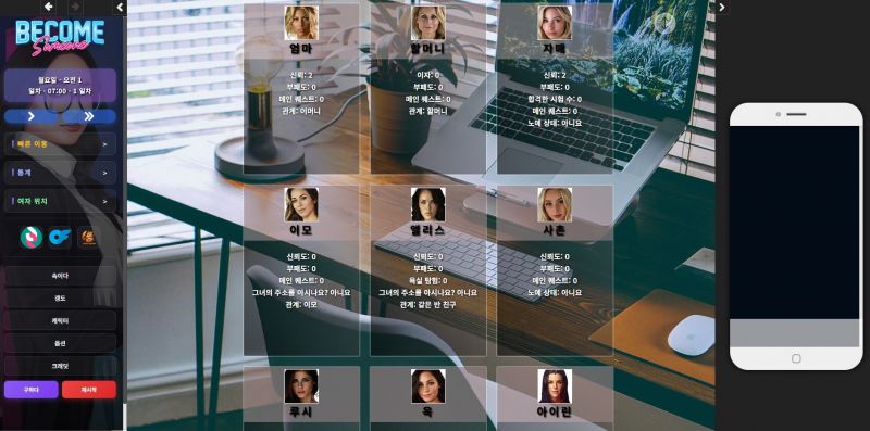 Become Someone은 성인 라이프 시뮬레이터 게임(HTML - 텍스트 기반)으로, 플레이어는 자신의 능력치에