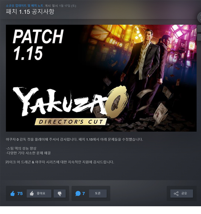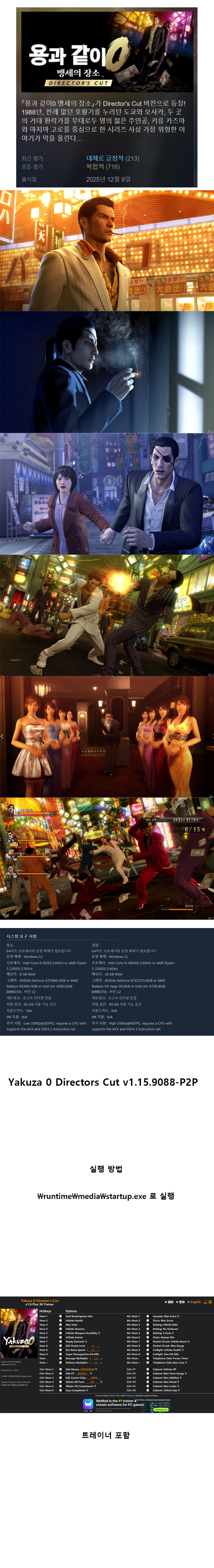[무설치] 용과 같이 제로 V1.15.9088 맹세의 장소 디렉터스 컷 한글