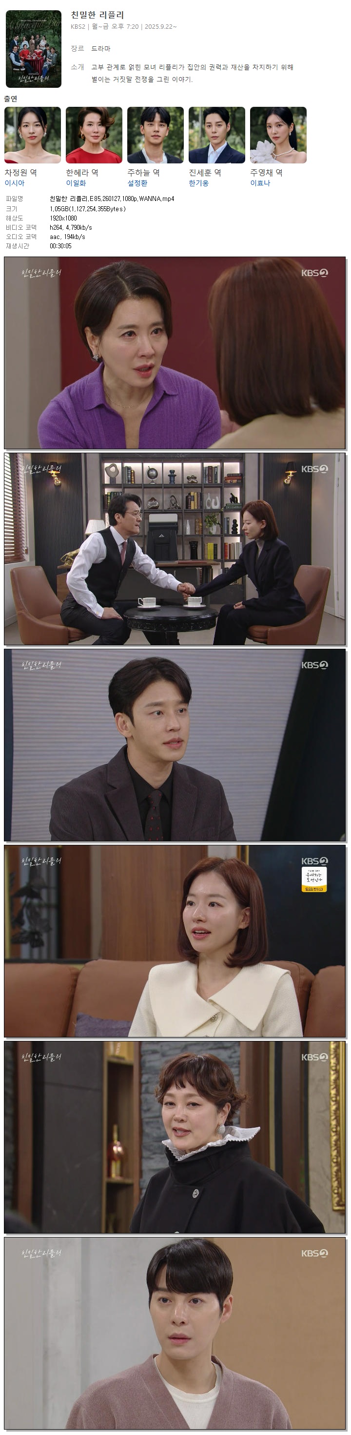 [KBS2] 친밀한 리플리.E85.260127.1080p.WANNA[이시아, 이일화]