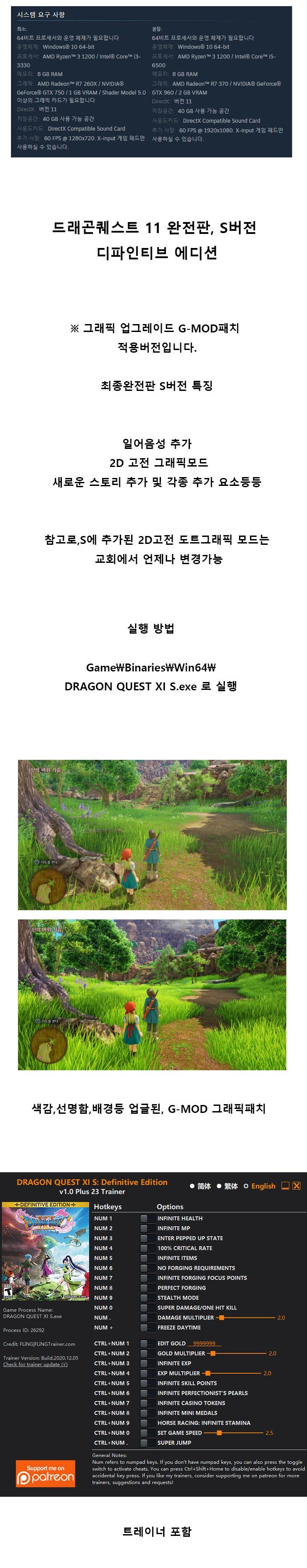 [한글] 드래곤 퀘스트 11 S 결정판 언락 세이브 모드포함